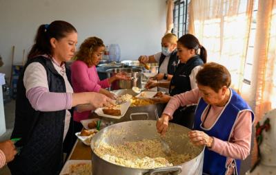 NAUCALPAN DE JUÁREZ, Estado de México.- En un menú navideño compuesto por sopa de codito, ensalada rusa y de manzana, ponche y pollo frito, se inauguró el segundo Comedor Comunitario de esta administración en la colonia Ampliación Benito Juárez.