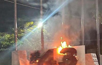 Incendian antimonumento a los 43 normalistas de Ayotzinapa en Guerrero