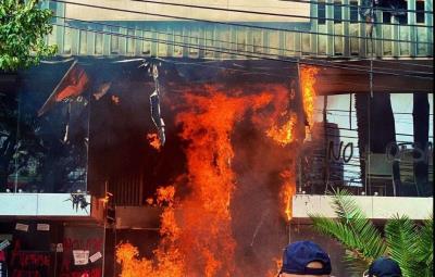 Al grito de “¡La policía no me cuida, me cuidan mis amigues!”, prendieron fuego en el acceso principal y rompieron puertas de cristal y ventanales.