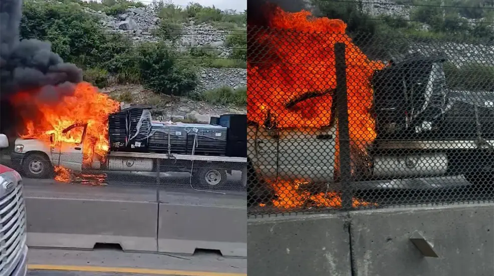 Incendio de camión en libramiento carretera Monterrey-Saltillo