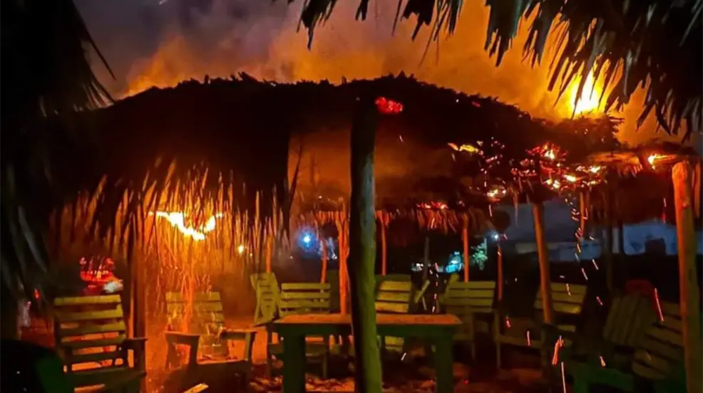 CIUDAD MADERO, Tamaulipas.- La noche del pasado domingo, un incendio alarmante se desató en las palapas de Playa Miramar, uno de los destinos turísticos más populares de Ciudad Madero. Las llamas, que se extendieron rápidamente, alertaron a residentes y visitantes, quienes presenciaron cómo varias de estas estructuras de madera y palma eran consumidas por el fuego.