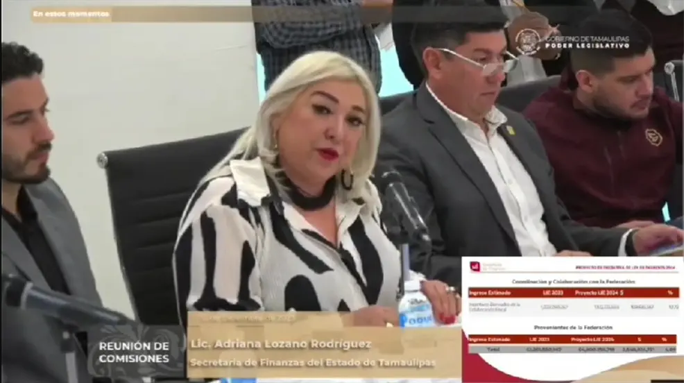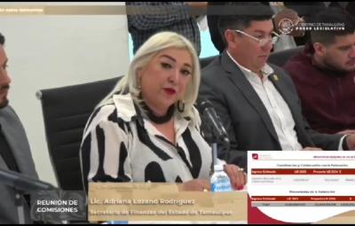 La titular de Finanzas presentó esta información ante las y los diputados de la Comisión de Finanzas, Planeación, Presupuesto y Deuda Pública del Congreso de Tamaulipas, luego de la entrega del Paquete Económico 2024 del Estado de Tamaulipas.