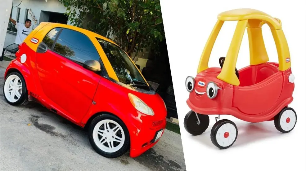 PIEDRAS NEGRAS, Coahuila. – Un Smart Car personalizado con el diseño del famoso juguete "Cozy Coupe" de Little Tikes ha causado furor en las redes sociales. El vehículo, que circula por las calles de Piedras Negras, revive recuerdos nostálgicos de los años 90, cuando el "Cozy Coupe" se convirtió en uno de los juguetes más queridos por los niños.