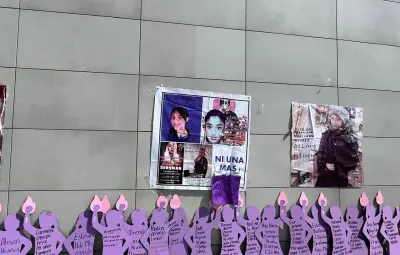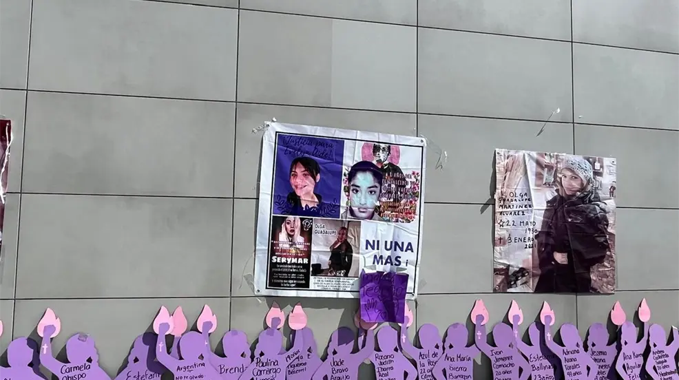 Finalmente, la Colectiva Feminista “Furia Coahuila” acudió para apoyar a los familiares de Olga y además colocaron en la explanada del Centro de Justicia decenas de cruces moradas con los nombres de las víctimas de feminicidio.