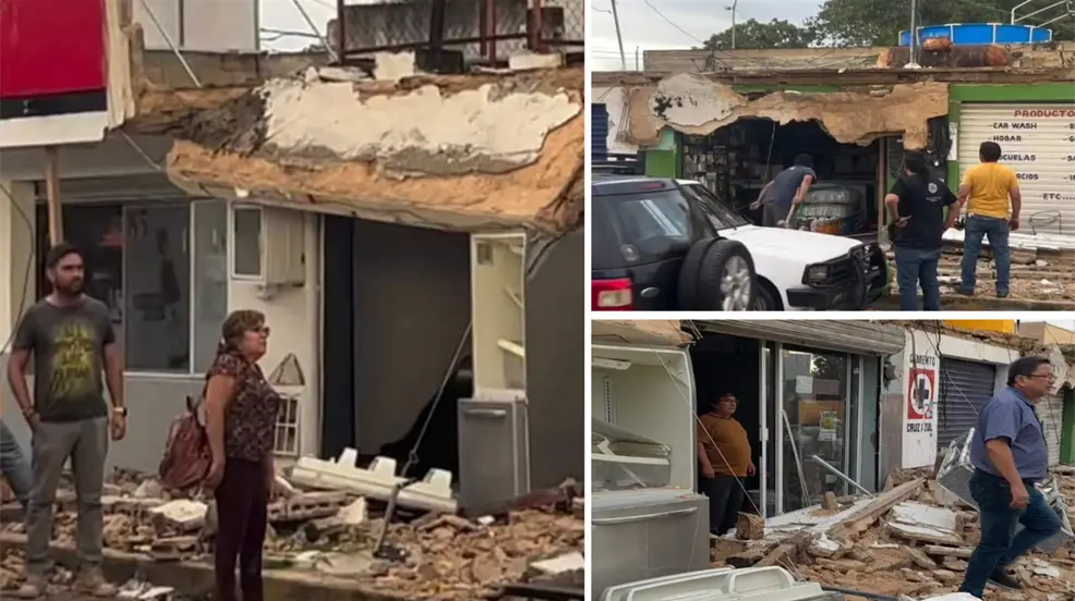 MÉRIDA, Yucatán.- Las constantes lluvias en Mérida provocaron el derrumbe de las marquesinas de varios locales comerciales en la colonia San Juan Grande, cerca del fraccionamiento Brisas. Los incidentes ocurrieron en la calle 35 entre 41 y 43, afectando a seis comercios.