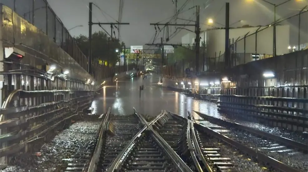 El personal de Instalaciones Hidráulicas y Mecánicas del Metro está trabajando para drenar el agua que ingresó del exterior al cajón de vías en la interestación Santa Marta-Los Reyes de la Línea A. Las labores de bombeo de agua se están llevando a cabo para descargar el agua acumulada hacia los registros de agua residual y así permitir las condiciones operativas necesarias para normalizar el servicio.