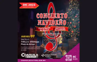 En los festejos decembrinos, se invita a los saltillenses al concierto que ofrecerá la banda de música del estado de Coahuila.