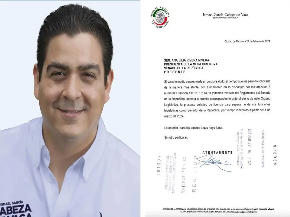 A través de un escrito dirigido a Ana Lilia Rivera, presidenta de la mesa directiva del Senado de la República, el político señala que su licencia será por tiempo indefinido.