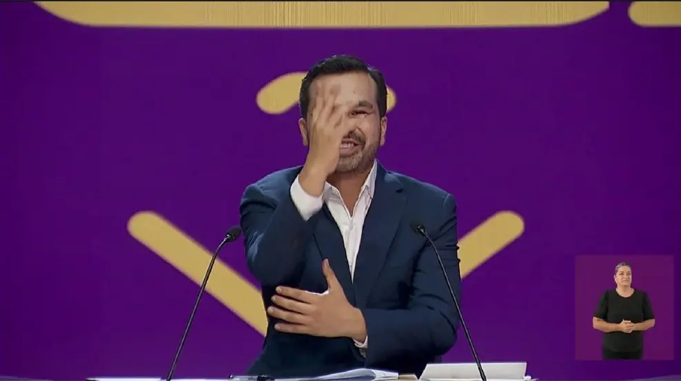 CIUDAD DE MÉXICO, México.- El candidato por Movimiento Ciudadano, Jorge Álvarez Máynez, regaló un momento único durante el debate presidencial, cuando pidió la palabra para poder presentarse a través del lenguaje de señas para las personas con discapacidad auditiva. Esto se suscitó cuando se abordó uno de los temas de mayor relevancia 'No discriminación, grupos vulnerables y violencia en contra de las mujeres'.