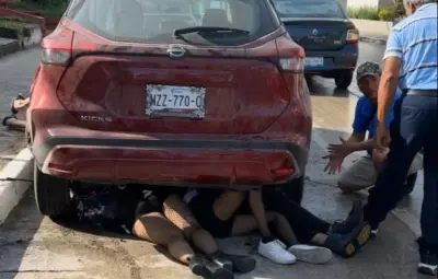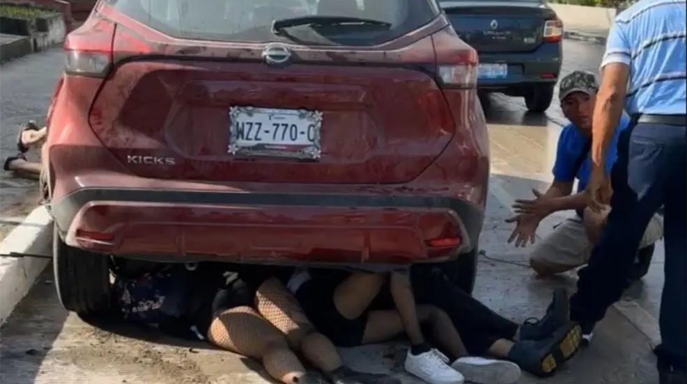 TAMPICO, Tamaulipas. - Tres jóvenes, dos chicas y un chico, se encuentran graves luego de terminar su loca carrera al quedar debajo de una camioneta de la avenida Ayuntamiento en Tampico.