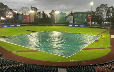 El duelo estaba agendado a las 19 hrs en el Parque de los Hermanos Serdán, pero antes del encuentro, las nubes aparecieron y el agua comenzó a caer, por lo que se puso la lona y el juego se retrasó.