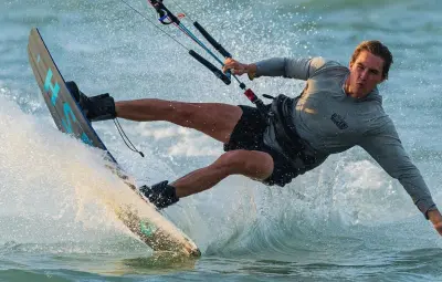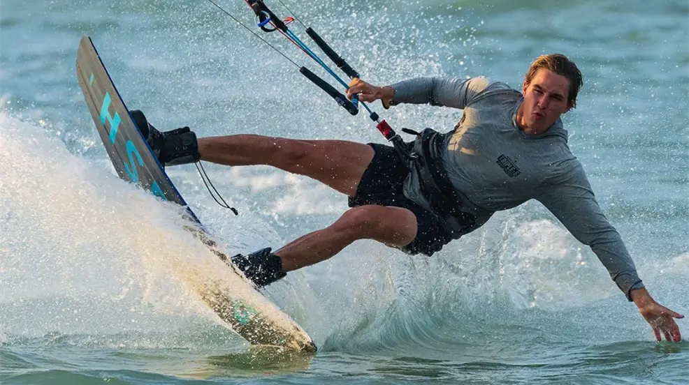 Aguas poco profundas y mucho vientos es la combinación ideal para esta practica que consiste en el uso de una cometa de tracción que tira de un deportista que está sujetado por unos arnés a cuatro o cinco cuerdas, lo que le permite deslizarse sobre el agua mediante una tabla de surf.