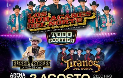 CIUDAD DE MÉXICO.- Los Huracanes del Norte, Eliseo Robles y Los Tiranos del Norte, llevarán todo su ritmo norteño a la Arena Ciudad de México, el próximo 3 de agosto.