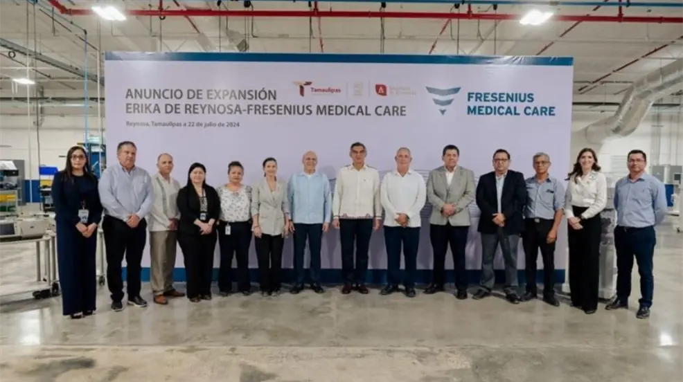 REYNOSA, Tamaulipas.- Con la presencia del gobernador Américo Villarreal Anaya, la empresa Erika de Reynosa, la planta más grande del mundo de la compañía alemana Fresenius Medical Care, anunció una inversión de diez millones de dólares en una nueva filial en esta ciudad que generará 600 empleos directos e indirectos.