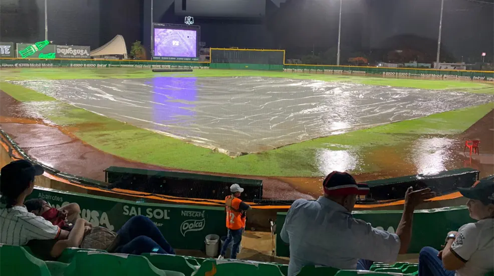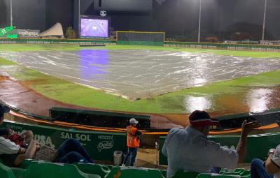 Sin embargo, el clima tenía otros planes y desde las 18:30 hrs, el agua y el viento no dio cuartel en el Víctor Cervera Pacheco, por lo que se tuvo que poner la lona sobre el diamante y esperar las 3 medias horas reglamentarias para decidir si habría pelota o no está noche en Kanasín.