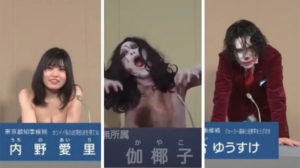 Candidaturas al gobierno de Tokio, Japón, causan revuelo en redes sociales, por inusuales procesos de campaña.