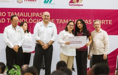 Fueron 585 estudiantes de la Universidad Tecnológica de Tamaulipas Norte, que recibieron su beca educativa.