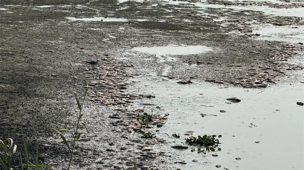 Tan solo en esa zona son 80 las familias que tienen que soportar los fétidos olores, mientras que las aves aprovechan a comerse a los pocos peces que quedan.