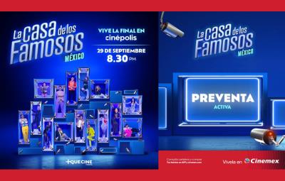 En esta ocasión Cinemex y Cinépolis han anunciado que transmitirán en sus salas la gran final de esta segunda temporada de La Casa de los Famosos México, en la que Mario Bezares, Arath de la Torre, Karime Pindter, Gala Montes y Briggite Bozo son los 5 finalistas.