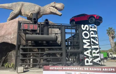 RAMOS ARIZPE, Coahuila. - El municipio de Ramos Arizpe, celebró la inauguración de su entrada monumental, una obra emblemática que fusiona su riqueza paleontológica con su potencia industrial.