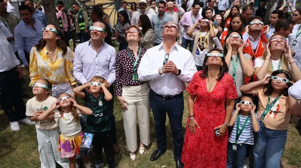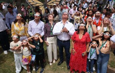 El gobernador Manolo Jiménez, junto a su esposa Paola Rodríguez López, sus hijos e hijas; además de su madre, Liliana Salinas, quien también es presidenta honoraria del DIF Coahuila; observaron el eclipse desde el Planetarium en Torreón, donde hubo 50 mil asistentes.