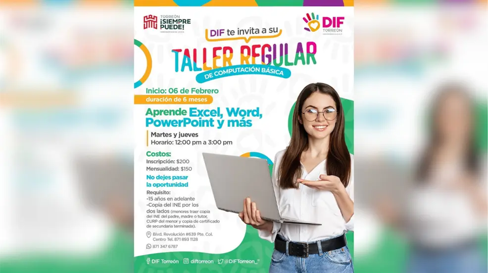 TORREÓN, Coahuila. - El DIF Torreón ha anunciado la apertura de inscripciones para su “Taller Regular de Computación Básica”, una puerta de entrada al mundo digital que promete transformar vidas en tan solo seis meses.