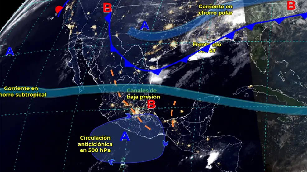 Además, se prevé un evento de Norte con rachas de viento de 50 a 70 km/h y olas de 1 a 3 metros de altura en las costas de Tamaulipas y Veracruz.