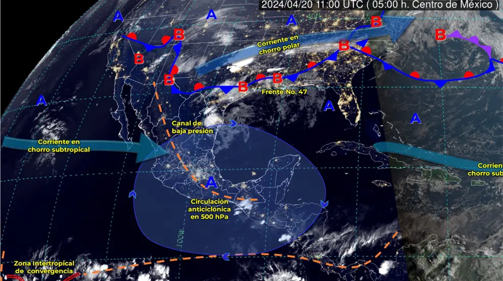 VICTORIA, Tamaulipas.- De acuerdo al Servicio Meteorológico Nacional, el frente frío No. 47 se mantendrá estacionario sobre el norte y noreste del país, interactuando con canales de baja presión y generando chubascos y lluvias puntuales fuertes.