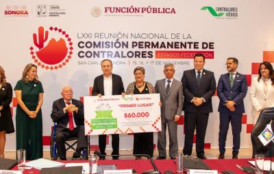 Este reconocimiento fue recibido por Hilda Salazar Gil, Secretaria de la Contraloría mexiquense, durante la LXXI Reunión Nacional de la Comisión Permanente de Contralores Estados-Federación (CPCE-F), llevada a cabo en San Carlos, Sonora.