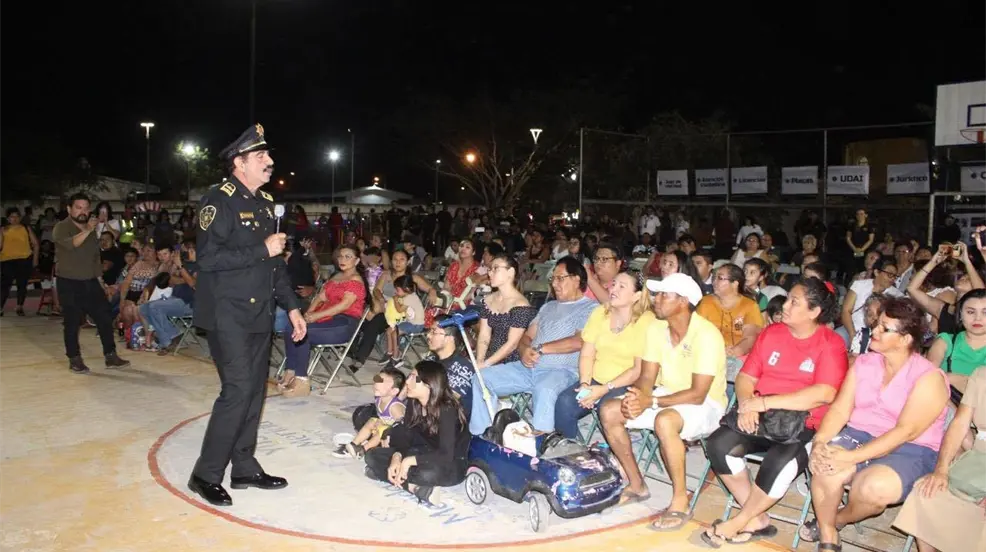 MÉRIDA, Yucatán.- En el marco del evento “Policía Cerca de Ti” de la Secretaría de Seguridad Pública, para estar cerca de la ciudadanía, el titular de la corporación, el Comandante Luis Felipe Saidén Ojeda, se dirigió a vecinos del fraccionamiento Juan Pablo II, al poniente de la capital yucateca.
