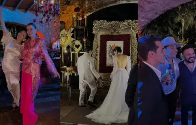 Para la boda, la influencer yucateca vistió un traje del diseñador tapatío Benito Santos en tonos dorados y rosado, en sus posteos ha mostrado un poco de la decoración y recepción de la boda.