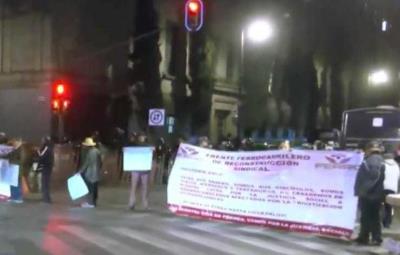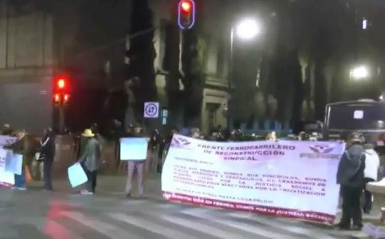 Manifestación de ferrocarrileros en CDMX frente a Palacio Nacional