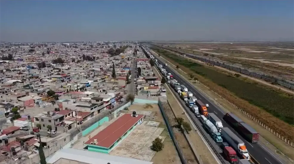 El Circuito Exterior Mexiquense fue bloqueado a la altura del kilómetro 44 +500, esto por un grupo de vecinos de la Colonia Polígonos 1, de Ecatepec de Morelos, que exigen suministro de agua.
