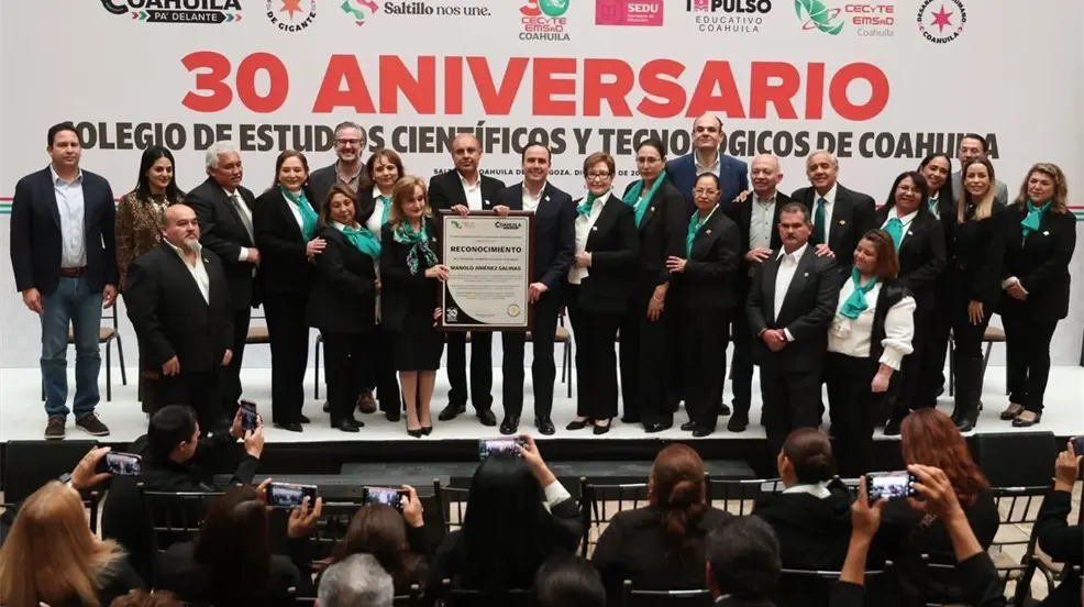 En el 30 aniversario dele Cecyte Coahuila, el gobernador Manolo Jiménez resalta el trabajo en equipo y anuncia nuevas oportunidades educativas y económicas para el estado.