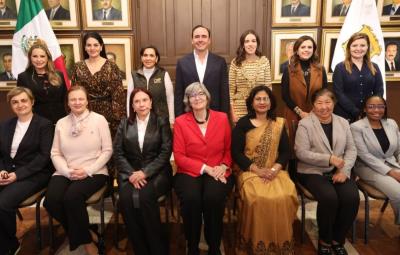Manolo Jiménez fortalece lazos internacionales de Coahuila; se reúne con embajadoras de otros países