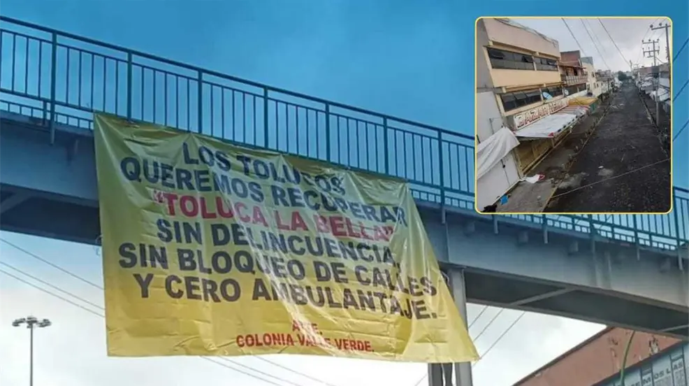 TOLUCA, Estado de México.- En un claro mensaje de la comunidad, una manta firmada por la colonia Valle Verde apareció recientemente en uno de los andadores de Paseo Tollocan. El texto expresa: 'Los tolucos queremos recuperar Toluca la Bella, sin delincuencia, sin bloqueo de calles y cero ambulantaje'. Este pronunciamiento refleja la creciente preocupación de los ciudadanos por la seguridad y el orden en la ciudad.