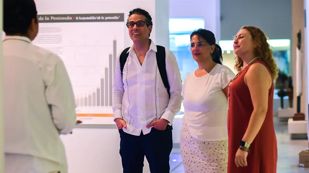 El también conferencista realizó un recorrido por las distintas salas del recinto, para conocer el acervo de piezas y demás vestigios históricos de la cultura maya y de la historia de la Península de Yucatán, así lo compartieron a través de las redes sociales del museo.