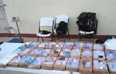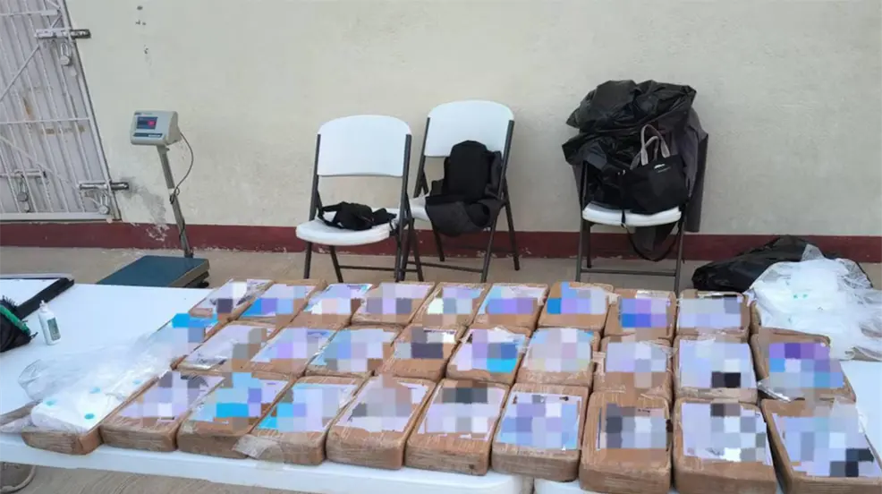 Al realizar la inspección correspondiente, se encontraron 30 paquetes tipo ladrillo que contenían un polvo blanco con características propias del clorhidrato de cocaína.