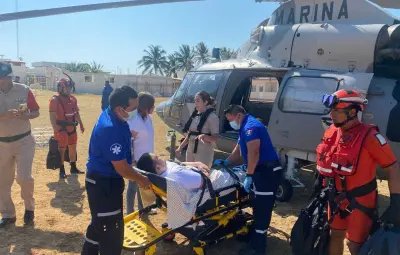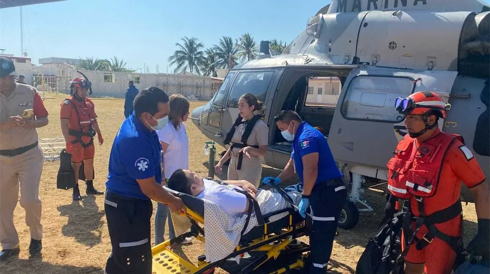 Esto se realizó tras una llamada de emergencia, por lo que se despegó un operativo con un helicóptero de la Armada de México, con personal médico a bordo para evacuarlo y estabilizarlo, durante el traslado a Progreso.
