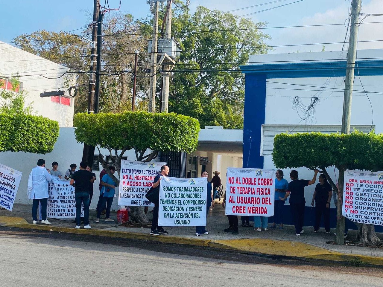 MÉRIDA, Yucatán.- Más protestas en Mérida. Por una serie de irregularidades entre las que se encuentran el cobro doble a los usuarios por servicios y el mal estado de las instalaciones donde laboran, trabajadores del Centro de Rehabilitación y Educación Especial (CREE) realizaron una manifestación la mañana de este miércoles en las instalaciones de la dependencia.