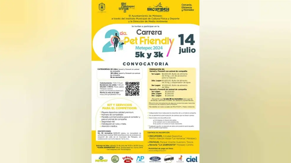 No te pierdas esta oportunidad de disfrutar un día lleno de deporte y solidaridad con tu mascota. Para más detalles, visita las redes sociales de IMCUFIDEM y Medio Ambiente de Metepec.