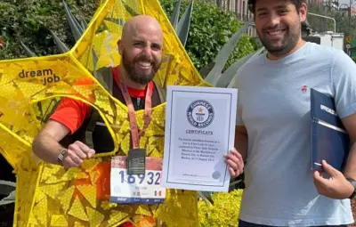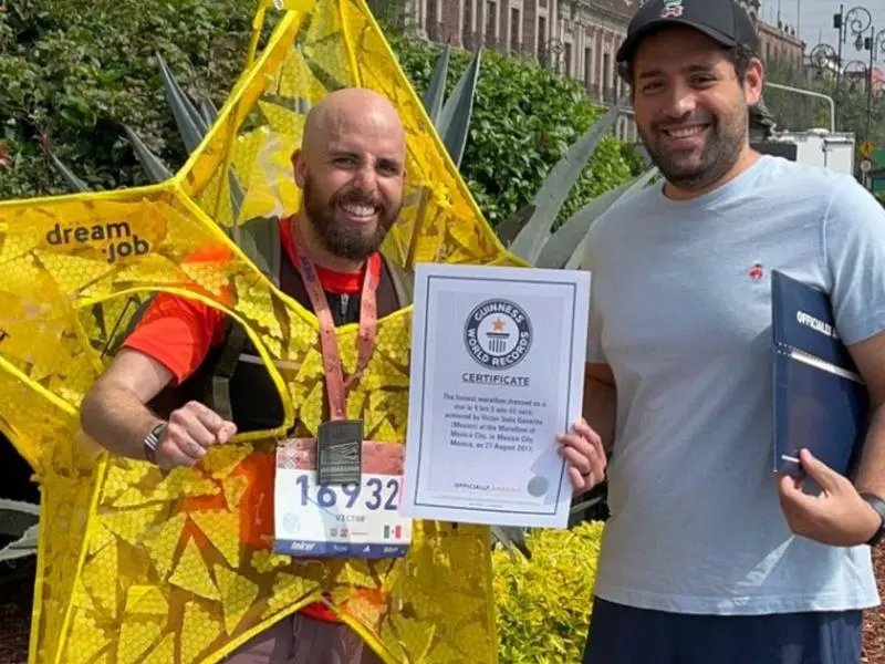 Mexicano corre disfrazado de estrella en Maratón CDMX y gana récord Guinness.