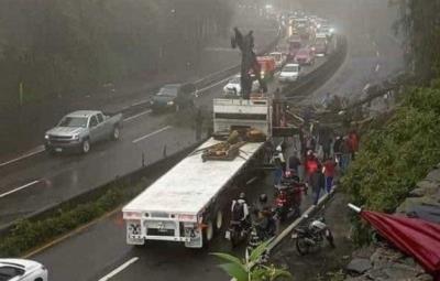 México-Toluca: Caída de árbol y desgajamiento de cerro causan tráfico intenso