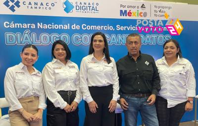 TAMPICO, Tamaulipas.- La candidata a la presidencia municipal de Tampico por MORENA, Mónica Villarreal Anaya, escuchó las peticiones de CANACO Tampico y promovió los 4 ejes estratégicos que propone para transformar al municipio.