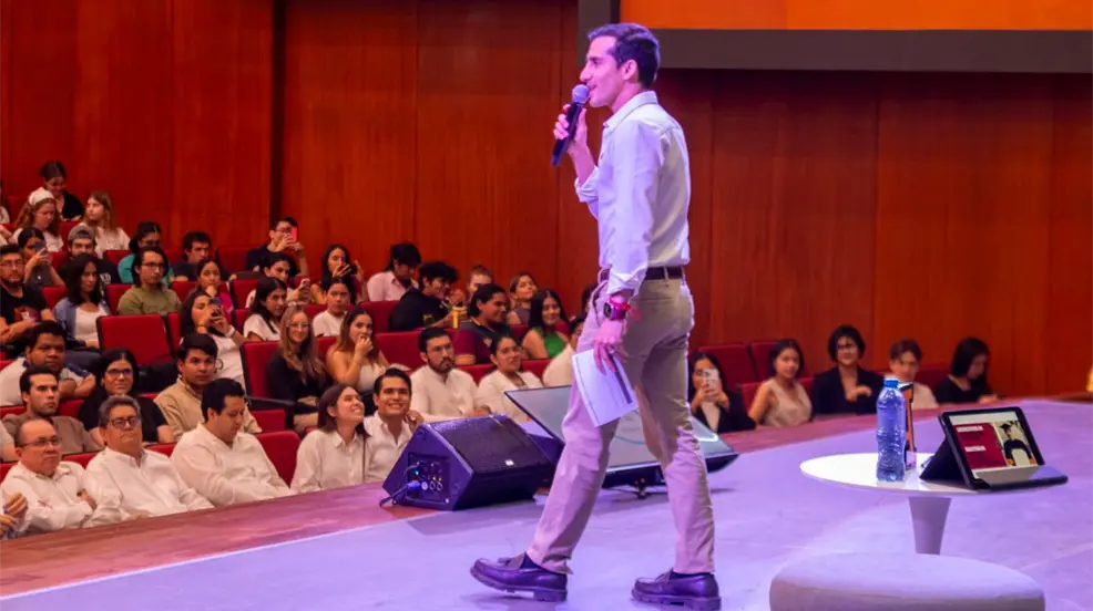 El candidato a la alcaldía de Mérida fue increpado por un estudiante durante su participación en el evento organizado por la Universidad Anáhuac Mayab