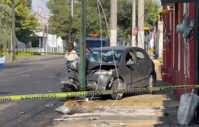 Un auto compactó 'centró' un poste de una luminaria en la avenida 1 de Mauo en la capital mexiquense:; el conductor murió tras el choque.