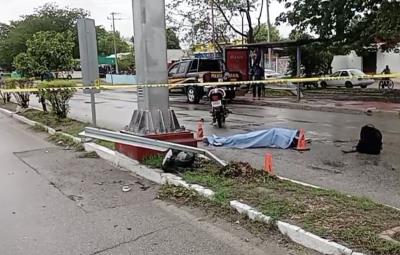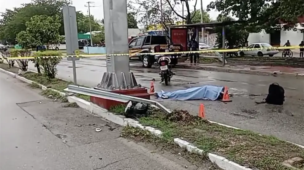 MÉRIDA, Yucatán.- El exceso de velocidad y el piso mojado por la lluvia habrían hecho que el guiador de una moto perdiera la vida la mañana de este viernes luego de derrapar sobre la Avenida Quetzalcóatl de Mérida.