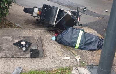 Peritos de la Fiscalía capitalina acudieron para retirar el l cuerpo sin vida del desafortunado motociclista.