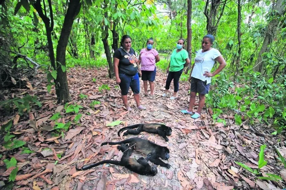 Las tareas de rescate son entre la selva y haciendas de cacaoteras. En muchos de los casos, para lograr el rescate de los monos aulladores los pobladores trepan los árboles para llevarles comida.