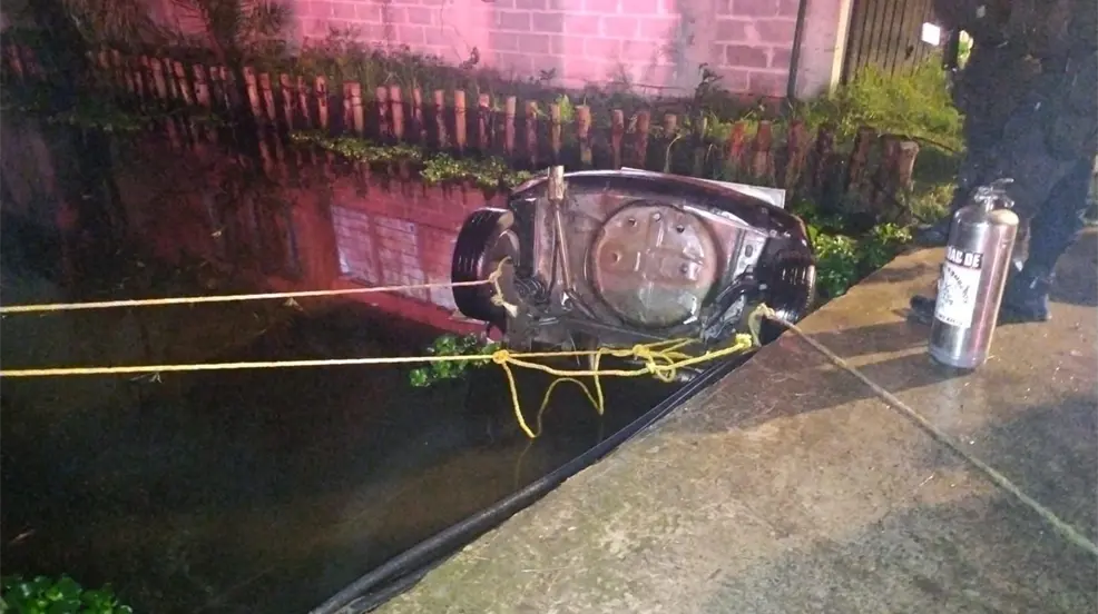 Ocurrió en el puente de conexión entre las colonias Barrio 18 y San Marcos, el cual se ubica sobre la calle Toltenco y Camino a la Ciénega, donde un auto tipo Chevy, cayó en picada al canal de aguas negras.